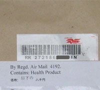 インドからのEMS便、RAM便は、クッション付きの封筒が多く使われます。 品名は「health Product」となっています。 医薬品名や商品名がラベルに表示されることはございません。 個人輸入で通関にて検査を受けますので、パソコン部品等へご希望の商品名への変更することは出来ません。 |